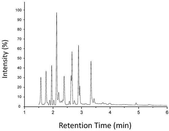 - Barea-Sepúlveda, M.; Duarte, H.; Aliaño-González, M.J.; Romano, A.; Medronho, B. Total Ion Chromatogram and Total Ion Mass Spectrum as Alternative Tools for Detection and Discrimination (A Review). Chemosensors 2022, 10, 465. [Google Scholar] [CrossRef]