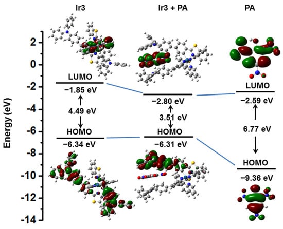 Calculated energy level diagram of Ir3, PA, and Ir3 + PA.