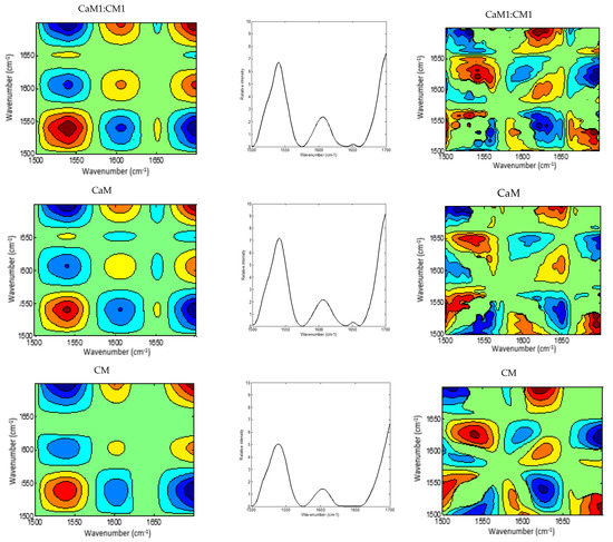 | CaM | 6.45 ± 0.02 a | 25.95 ± 0.06 a | 29.32 ± 0.03 a | 51.63 ± 0.04 d | 107.24 ± 0.05 a | −563.63 ± 0.03 a |