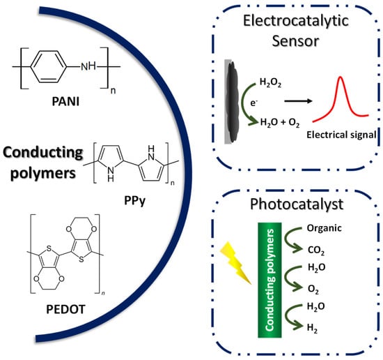 - Tajik, S.; Beitollahi, H.; Nejad, F.G.; Shoaie, I.S.; Khalilzadeh, M.A.; Asl, M.S.; Van Le, Q.; Zhang, K.; Jang, H.W.; Shokouhimehr, M. Recent developments in conducting polymers: Applications for electrochemistry. RSC Adv. 2020, 10, 37834–37856. [Google Scholar] [CrossRef]