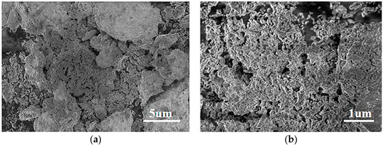 In Figure 5a, we can see the XRD figures of the prepared NiO and NiTiO3-NiO. Among them, diffraction peaks (111) and (200) corresponded to JCPDS card No. 71-1179 at 2θ angles of 37.245° and 43.275°. The diffraction peak (110) in the sample corresponded to the spectrum of nickel titanate. In addition, no other diffraction peaks were found, which indicates that the synthesized samples were of high purity.