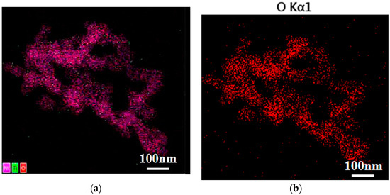 Figure 4 shows the uniform distribution of elements O, Ni, and Ti in the 10% NiTiO3-NiO samples. The above results were consistent with the outcomes of EDS and XRD.
