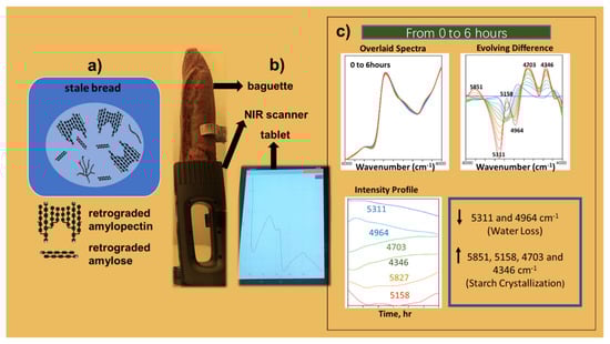 - Ringsted, T.; Siesler, H.W.; Engelsen, S.B. Monitoring the staling of wheat bread using 2D MIR-NIR correlation spectroscopy. J. Cereal Sci. 2017, 75, 92–99. [Google Scholar] [CrossRef]