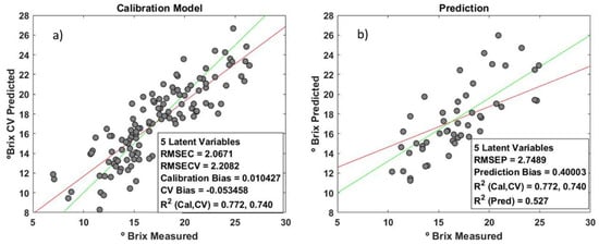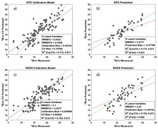 - Roger, J.-M.; Chauchard, F.; Bellon-Maurel, V. EPO–PLS external parameter orthogonalisation of PLS application to temperature-independent measurement of sugar content of intact fruits. Chemom. Intell. Lab. Syst. 2003, 66, 191–204. [Google Scholar] [CrossRef]