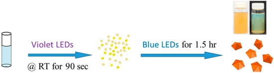 - Langille, M.R.; Personick, M.L.; Mirkin, C.A. Plasmon-Mediated Syntheses of Metallic Nanostructures. Angew. Chem. Int. Ed. 2013, 52, 13910–13940. [Google Scholar] [CrossRef]