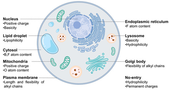 - Lu, S.; Dai, Z.; Cui, Y.; Kong, D.-M. Recent Development of Advanced Fluorescent Molecular Probes for Organelle-Targeted Cell Imaging. Biosensors 2023, 13, 360. [Google Scholar] [CrossRef]