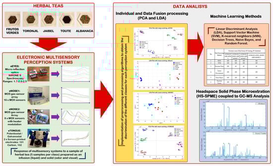 Figure 2 illustrates the methodological scheme used to conduct the different tests to classify the herbal tea samples.