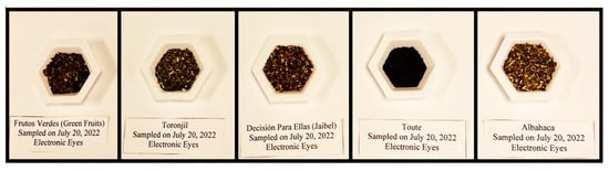 Herbal tea is a traditional and popular drink consumed worldwide for its health benefits since it is made from dried leaves, flowers, seeds, fruits, stems, and plant roots []. To take advantage of the sensory characteristics of herbal teas, such as aroma, flavor (mint, fruit, savory, sage, thyme, etc.), and color (black, brown, red, green, etc.), which vary depending on the components of each one, an artificial sensory analysis is required.