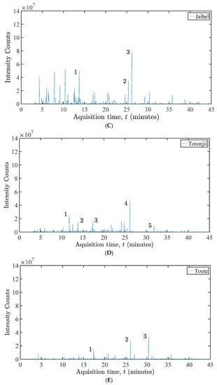 - Oates, M.J.; Fox, P.; Sanchez-Rodriguez, L.; Carbonell-Barrachina, Á.A.; Ruiz-Canales, A. DFT based classification of olive oil type using a sinusoidally heated, low cost electronic nose. Comput. Electron. Agric. 2018, 155, 348–358. [Google Scholar] [CrossRef]
