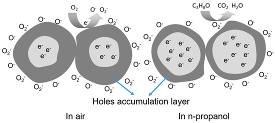 At this time, the “holes accumulation layer” is thinned, the resistance of the material increases, and the conductivity decreases, so as to detect the reducing gas n-propanol.