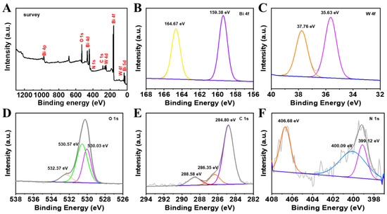 3.2. Structure and Chemical Compositions of Bi2WO6@g-C3N4 Composites