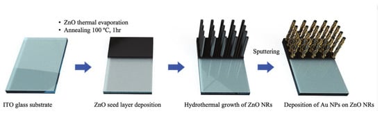 Schematic of the fabrication process of the Au NPs/ZnO NRs nanostructure-based sensor for 5hmC detection []. Copyright 2021, Wiley.