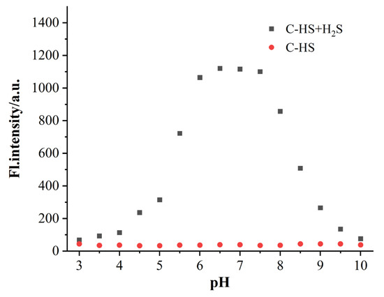 The fluorescence intensity changes in C-HS (10 μM) treated or untreated with H2S (30 μM) at different pH solutions.