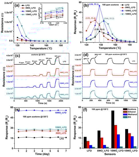 Cao, E.; Zhang, Y.; Sun, L.; Sun, B.; Hao, W.; Zhang, Y.; Nie, Z. WO3-LaFeO3 Nanocomposites for Highly Sensitive Detection of Acetone Vapor at Low Operating Temperatures. Chemosensors 2023, 11, 439. https://doi.org/10.3390/chemosensors11080439