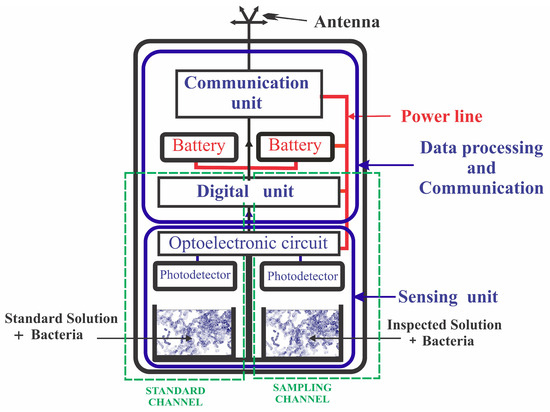 A modern bioreporter-based sensor is a two-unit module consisting of an analog sensing unit and a digital data processing and communication unit. The sensing unit contains the bioreporters, detects the light they emit, and produces an analog output signal. The digital unit is multifunctional: (i) it digitizes and processes the analog signals produced by the sensing unit and produces a digital record of the measurement, together with auxiliary relevant information (e.g., date and time); (ii) it manages the operation of the sensor; and (iii) it transmits the records produced by the sensor to remote receivers and receives operational instructions from a control center. Modern sensors are expected to operate either as standalone units or as nodes in sensor networks that are field deployable in large numbers, for both indoor and outdoor operation [7].