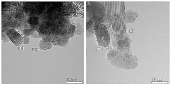 The high-resolution TEM (HRTEM) investigations revealed the presence of (110) and (101) crystallographic facets (Figure 4). Kuncser et al. [20], using VESTA modelling, showed that (110) and (101) facets mostly have oxygen terminations.