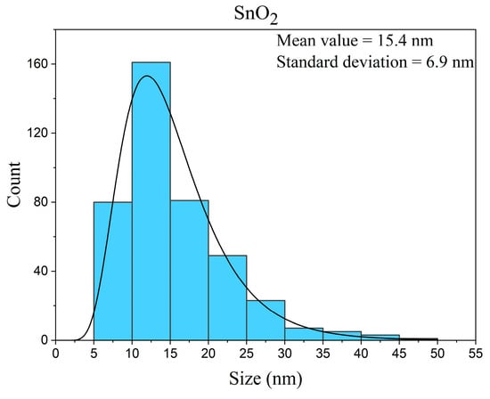 SnO2 nanoparticles size distribution histogram fitted using a log-normal function.