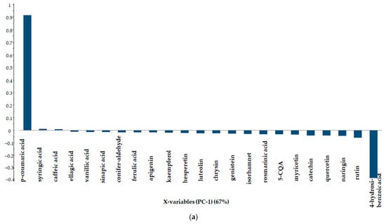 The first principal component is defined by p-coumaric acid (Figure 5a), the second principal component by 4-hydroxibenzoic acid (Figure 5b) and the third principal component by hesperetin (Figure 5c).