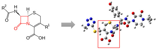 Functional group specific to cephalosporins. β–lactam is marked in red.