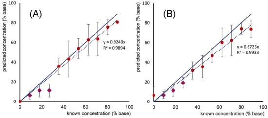 The developed models were used to predict the cocaine concentration of independent validation samples at known cocaine concentrations. Figure 12 shows the result of the validation study using the standard normal variate (SNV) first derivative full-spectrum preprocessing and SNV second derivative (740–1070 nm) region of interest preprocessing. Notably, the machine learning algorithms model yielded 97% true-positive and 98% true-negative results. In addition, the models demonstrated accurate detection of the cocaine types (base of HCl) in over 100 case-independent samples, demonstrating the practical application of the protocols for on-scene drug detection. The use of chemometrics combined with various spectroscopy methods, including FTIR spectroscopy, has been extensively reviewed by Deconinck and coauthors []. Some of the drugs focused on in this review include cocaine, heroin, and MDMA (or ecstasy). Applying chemometrics to spectroscopy techniques has several advantages for analyzing and identifying various illicit drugs []. Although chemometrics require training and is often complex, it is useful for the determination of multiple drug compounds and identifying new illicit drugs that appear as outliers in the chemometric model []. In addition to its low cost and portability, this handheld NIR spectrometer is robust, easy to use, requires no extensive training, and requires limited sample preparation, allowing drug enforcement offices and community drug service technicians access to use it. In addition, easy access to Internet networks allows smartphones to rapidly disseminate and store NIR spectral data in a cloud environment via Bluetooth and WiFi/4G connections.