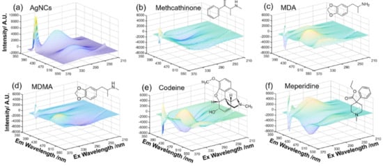 - Ju, L.; Lyuy, A.; Hao, H.; Shen, W.; Cui, H. Deep Learning-Assisted Three-Dimensional Fluorescence Difference Spectroscopy for Identification and Semiquantification of Illicit Drugs in Biofluids. Anal. Chem. 2019, 91, 9343–9347. [Google Scholar] [CrossRef]