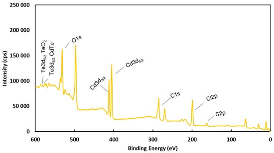 XPS survey spectrum of the as-synthesized TGA-CdTe QDs from Run 7 of DoE.
