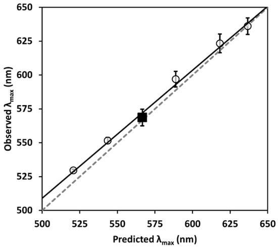 Graphical representation of the observed and predicted λmax in the validation experiments.