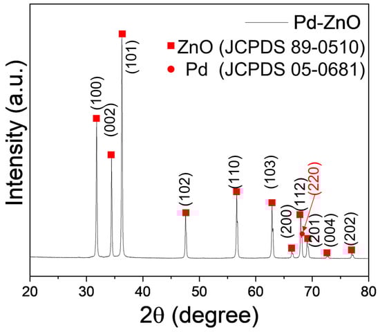 XRD pattern of Pd-decorated ZnO NPs.