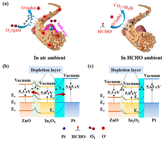 - Ou, Y.; Zhu, G.; Liu, P.; Jia, Y.; Zhu, L.; Nie, J.; Zhang, S.; Zhang, W.; Gao, J.; Lu, H.; et al. Anchoring Platinum Clusters onto Oxygen Vacancy-Modified In2O3 for Ultraefficient, Low-Temperature, Highly Sensitive, and Stable Detection of Formaldehyde. ACS Sens 2022, 7, 1201–1212. [Google Scholar] [CrossRef] [PubMed]