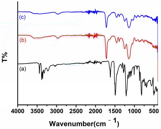 The ATR-FTIR spectra of (a) 4,4′−ODA, (b) MIP, and (c) NIP surfaces.