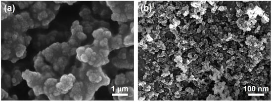 Fourier transform infrared (FT-IR) spectroscopy was performed using a Nicolet IS50 FT-IR spectrometer (Thermo Fisher Scientific, Madison, WI, USA) within the range of 4000–400 cm−1. Powder X-ray diffraction (PXRD) measurements were conducted on an Ultima IV diffractometer with Cu-Kα radiation (λ = 1.5418 Å) in the range of 10–80°. The morphology and structure were analyzed using scanning electron microscopy (SEM) (JEOL JSM 6510) (JEOL, Akishima-shi, Tokyo, Japan) and transmission electron microscopy (TEM) (JEOL TEM 2100) (JEOL, Akishima-shi, Tokyo, Japan). X-ray photoelectron spectroscopy (XPS) analysis was performed using an ESCA Lab 250 spectrometer from Thermo in Shanghai, China, with a monochromatic Al Kα excitation source at 1486.6 eV. Cyclic voltammetry (CV), differential pulse voltammetry (DPV), and electrochemical impedance spectroscopy (EIS) were conducted using Zahner-Zennium Pro (Kronach, Gundelsdorf, Germany). The electrochemical cell employed in this study was comprised of a glassy carbon electrode (GCE), with a diameter of 2 mm and modified with various electrochemical materials, acting as the working electrode; a platinum electrode as the auxiliary electrode; and an Ag/AgCl electrode as the reference electrode.