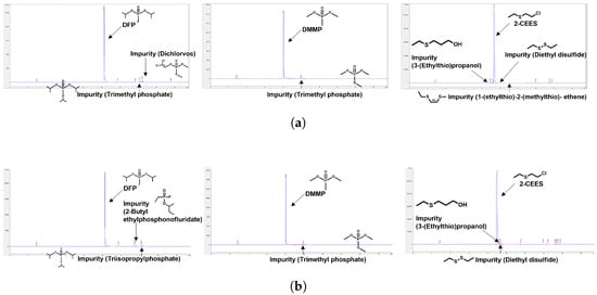 We used data that experimentally measured the gas chromatography of DMMP, DFP, and 2-CEES using the Agilent 8890 GC system (G3540A). Each chemical was measured under the experimental conditions as shown in Table 1 in the device such as Figure 4c, and each chemical was measured under the experimental conditions, as shown in Table 2, and we proceeded based on the standard experimental protocol in the experiment [].