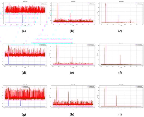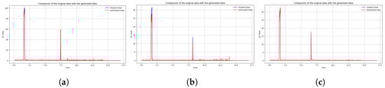 The batch size is trained as a whole for sampling by the preprocessing algorithm proposed in Section 3. Mean squared error (MSE) loss used in Table 3a is a loss function that measures the mean square difference between the predicted value and the true value. MSE loss is used to calculate the difference between the values of the result of the autoencoder and the actual chromatography data. MSE loss measures the difference between binary values of input and output, indicating that the smaller the loss, the better the reconstruction. This makes it a suitable loss function for the autoencoder for gas chromatography data, which aims to minimize reconstruction errors between input and output. On the other hand, binary cross-entropy (BCE) loss used in Table 3b measures the discrepancy between the predicted probability distribution and the actual probability distribution. The generator is then updated to minimize this difference so that the generated data are more similar to the actual data. By minimizing BCE loss, the generator is encouraged to generate gas chromatography data similar to the real data.