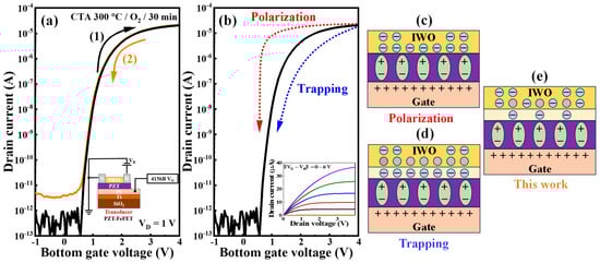 43. Teng, W.; Bao, S.Y.; Hu, Y.Q.; Deng, X.; Guan, Z.; Chen, B.B.; Zhong, N.; Xiang, P.H. Ferroelectric controlled interfacial effect on the electronic properties of PZT gated IGZO channel thin-film transistors. ACS Appl. Electron. Mater. 2024, 6, 1063–1070. [Google Scholar] [CrossRef]