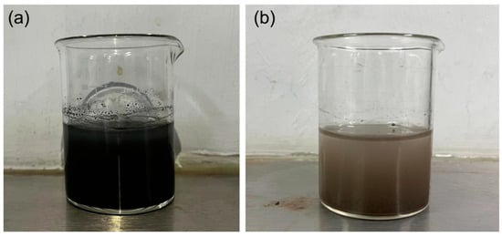 An important aspect to highlight is that the samples analyzed in both cases (Table 3 and Table 4) presented a high amount of solids in suspension, as can be appreciated in Figure 11. For the UV-vis molecular absorption spectrophotometric analysis, it was necessary to perform solid separation steps until the solution was completely transparent to the light beam. However, the voltammetric method using the TiO2/CPE did not require these steps; that is, the analysis was performed directly on both samples with prior dilution. This means that the electrochemical method eliminates sample preparation steps, which reduces the cost of analysis by eliminating the need for pre-separation infrastructure. In addition, the analysis is much faster, allowing more analytical determinations to be performed in a given unit of time.