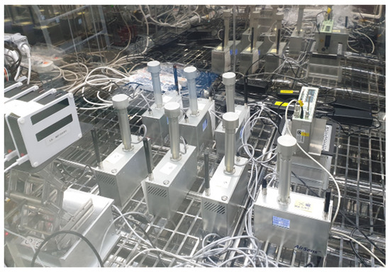 In the present study, a BAM (5028i, Thermo Fisher Scientific, Waltham, MA, USA) was utilized as the beta-ray attenuation method for measuring PM2.5 concentrations. The BAM operated at a sampling flow rate of 16.67 L/min, and the sampling duration was set to 1 h. The measurement range of the BAM was 0~1 mg/m3 with a precision of ±2 µg/m3 for concentration < 80 µg/m3 and 4~5 µg/m3 for concentration > 80 µg/m3.