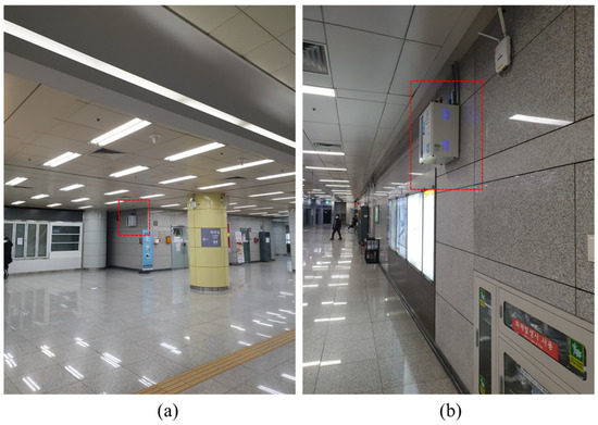 Real photos of representative OPCs installed (a) in a concourse and (b) at a platform.