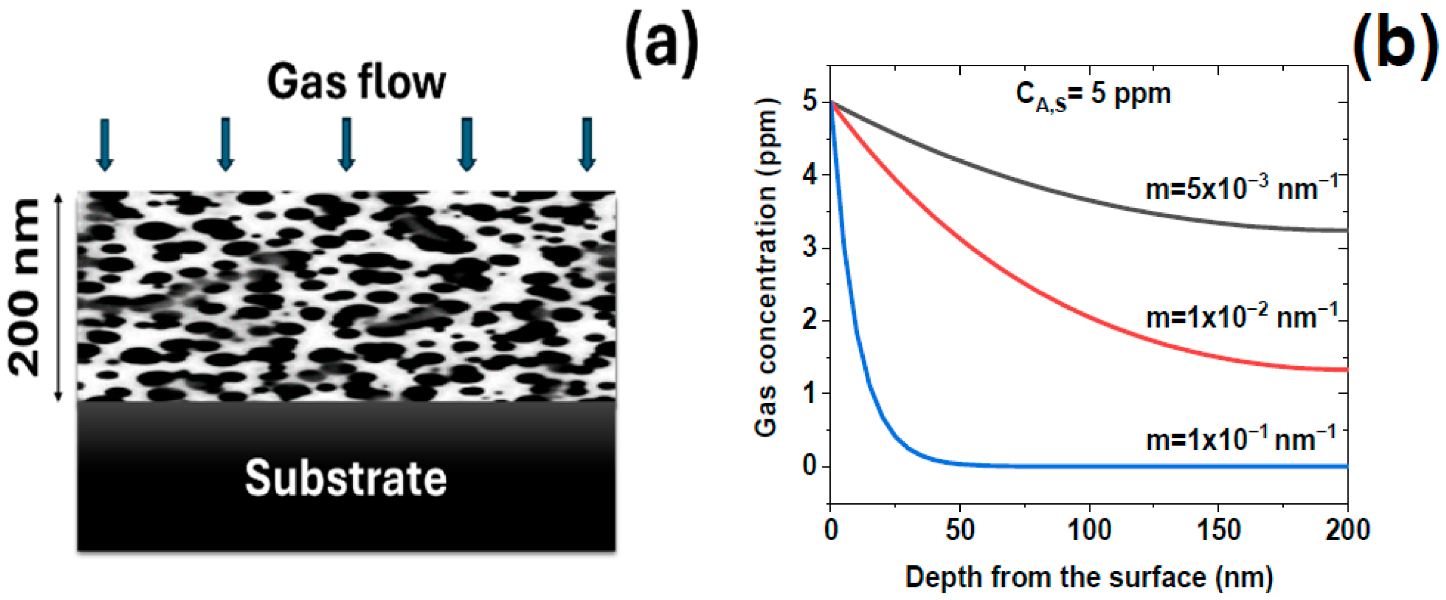 2.2. Modeling Gas Diffusion and Surface Kinetics in Porous ZnO