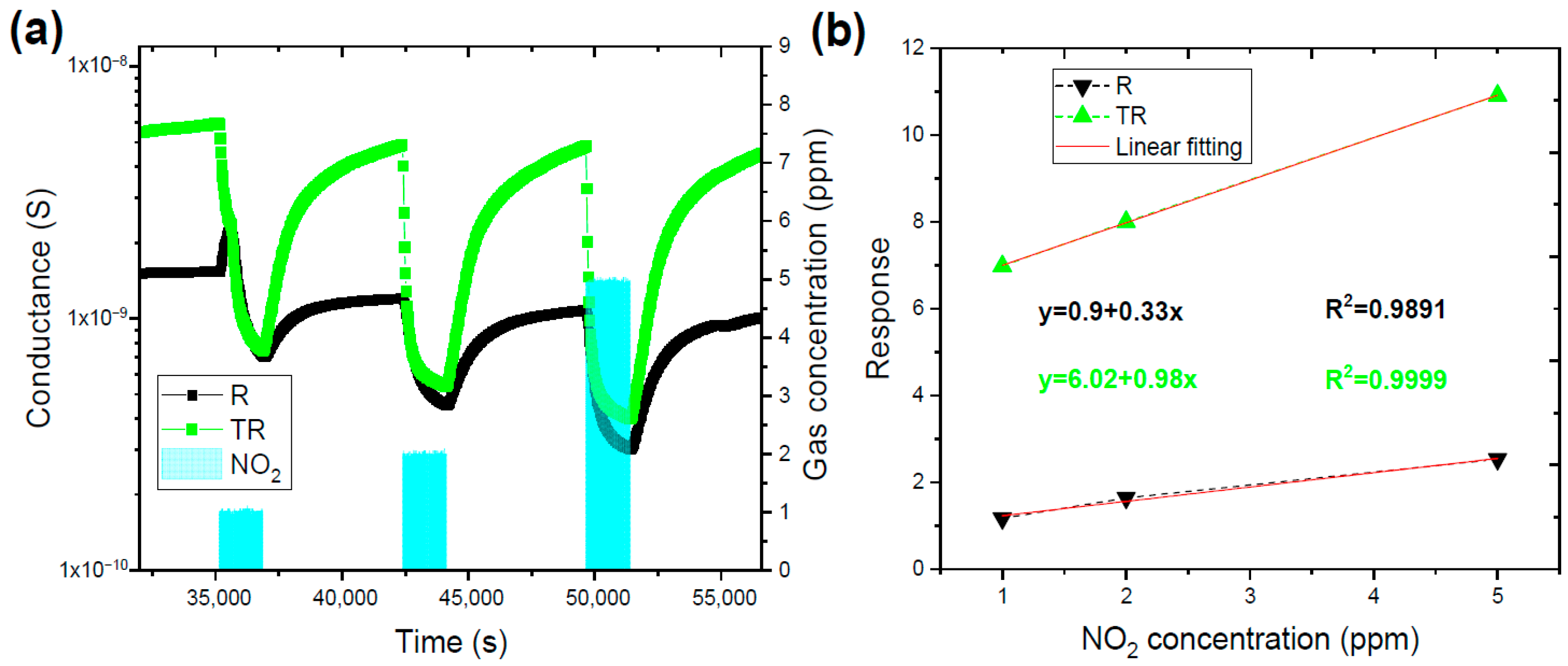 - Andringa, A.-M.; Piliego, C.; Katsouras, I.; Blom, P.W.M.; Leeuw, D.M.D. NO2 Detection and Real-Time Sensing with Field-Effect Transistors. Chem. Mater. 2014, 26, 773–785. [Google Scholar] [CrossRef]