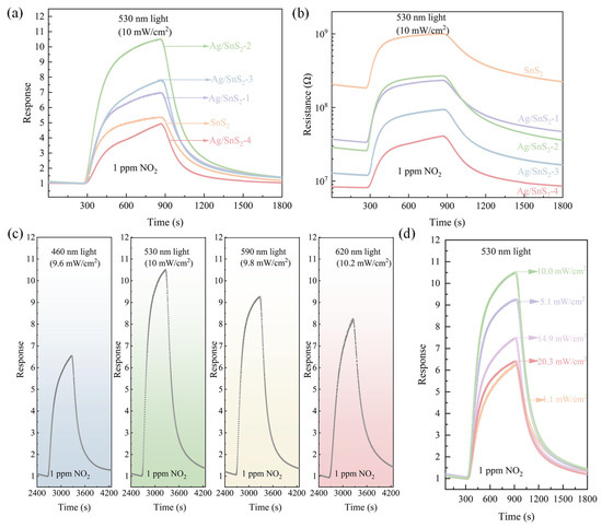 Gu, D.; Dong, J.; Liu, W.; Li, X. Room Temperature Sub-ppm NO2 Gas Sensor Based on Ag/SnS2 Heterojunction Driven by Visible Light. Chemosensors 2025, 13, 368. https://doi.org/10.3390/chemosensors13100368
