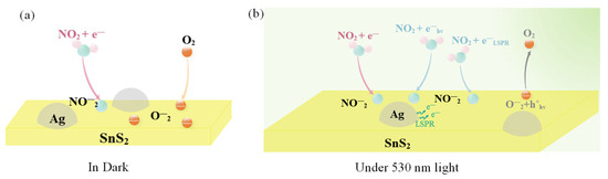 - Hu, J.; Zhang, J.; Liu, X.; Zhang, H.; Xue, X.-X.; Zhang, Y. Highly Selective NO2 Sensor Based on Au/SnS2 Nano-Heterostructures via Visible-Light Modulation. Appl. Surf. Sci. 2023, 623, 157093. [Google Scholar] [CrossRef]