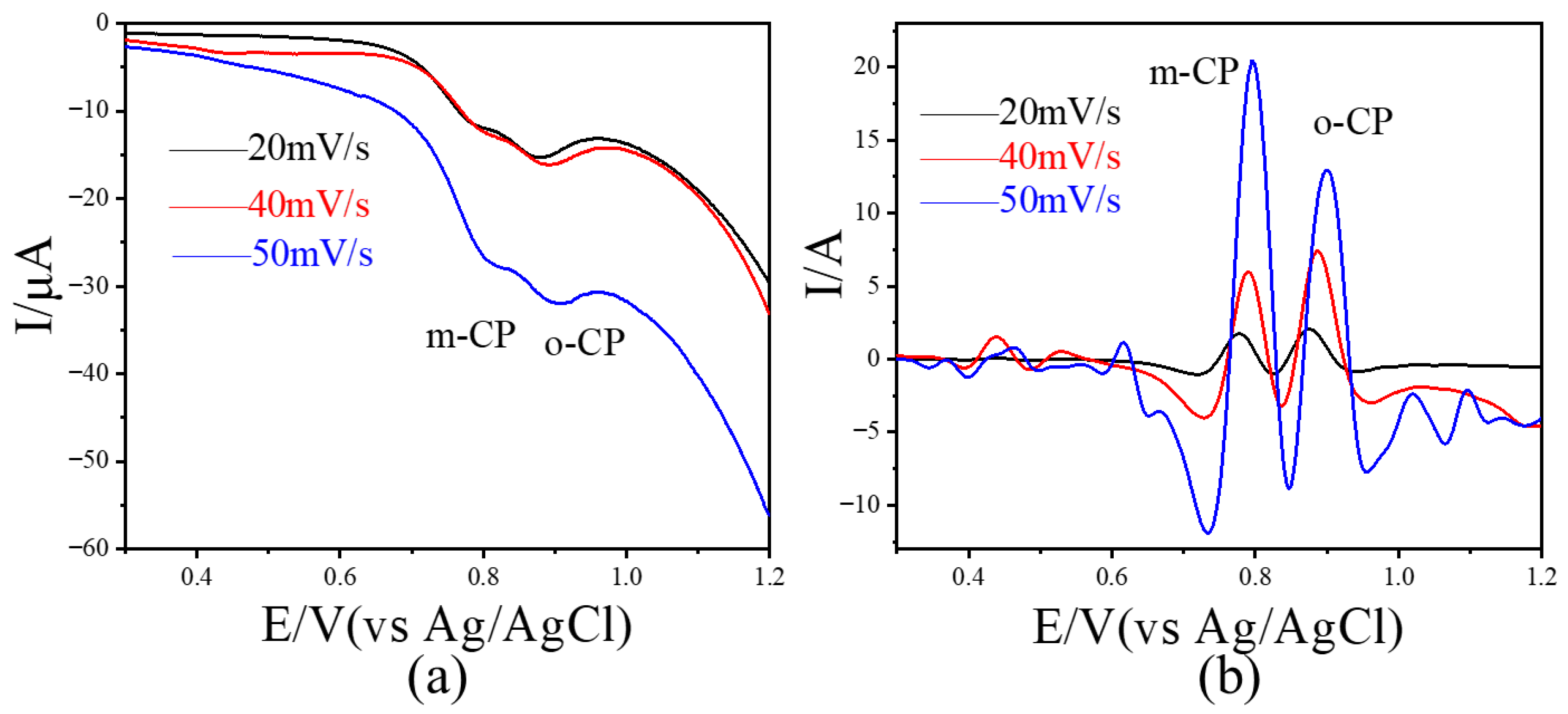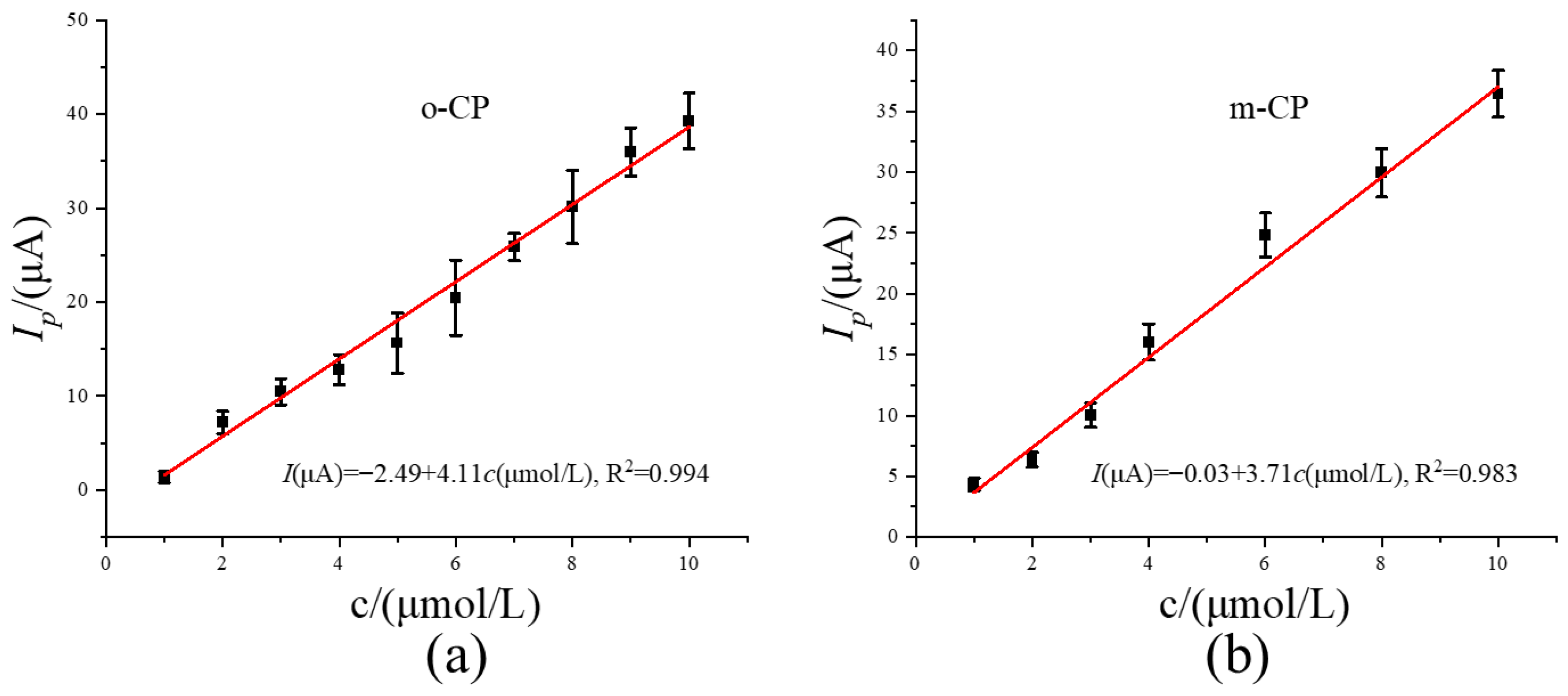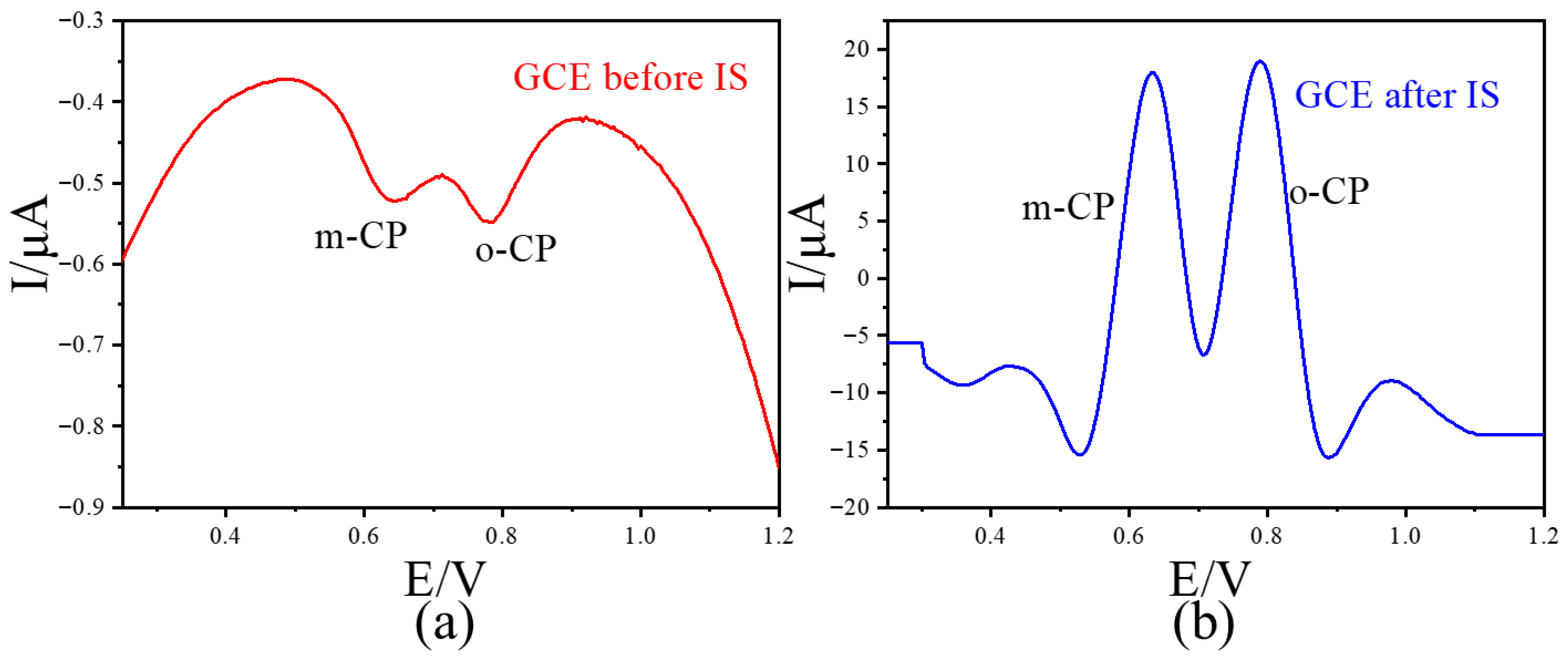 | Options | Peak Potential Difference Value (V) | Sensitivity for o-CP (A/mol L−1) | LOD for o-CP (μmol L−1) | Sensitivity for m-CP (A/mol L−1) | LOD for m-CP (μmol L−1) |