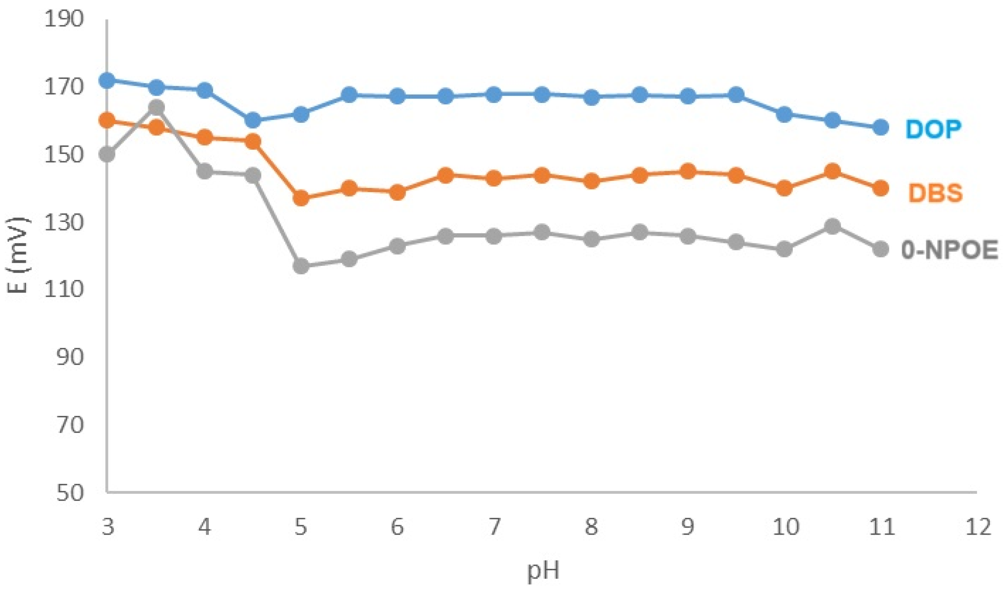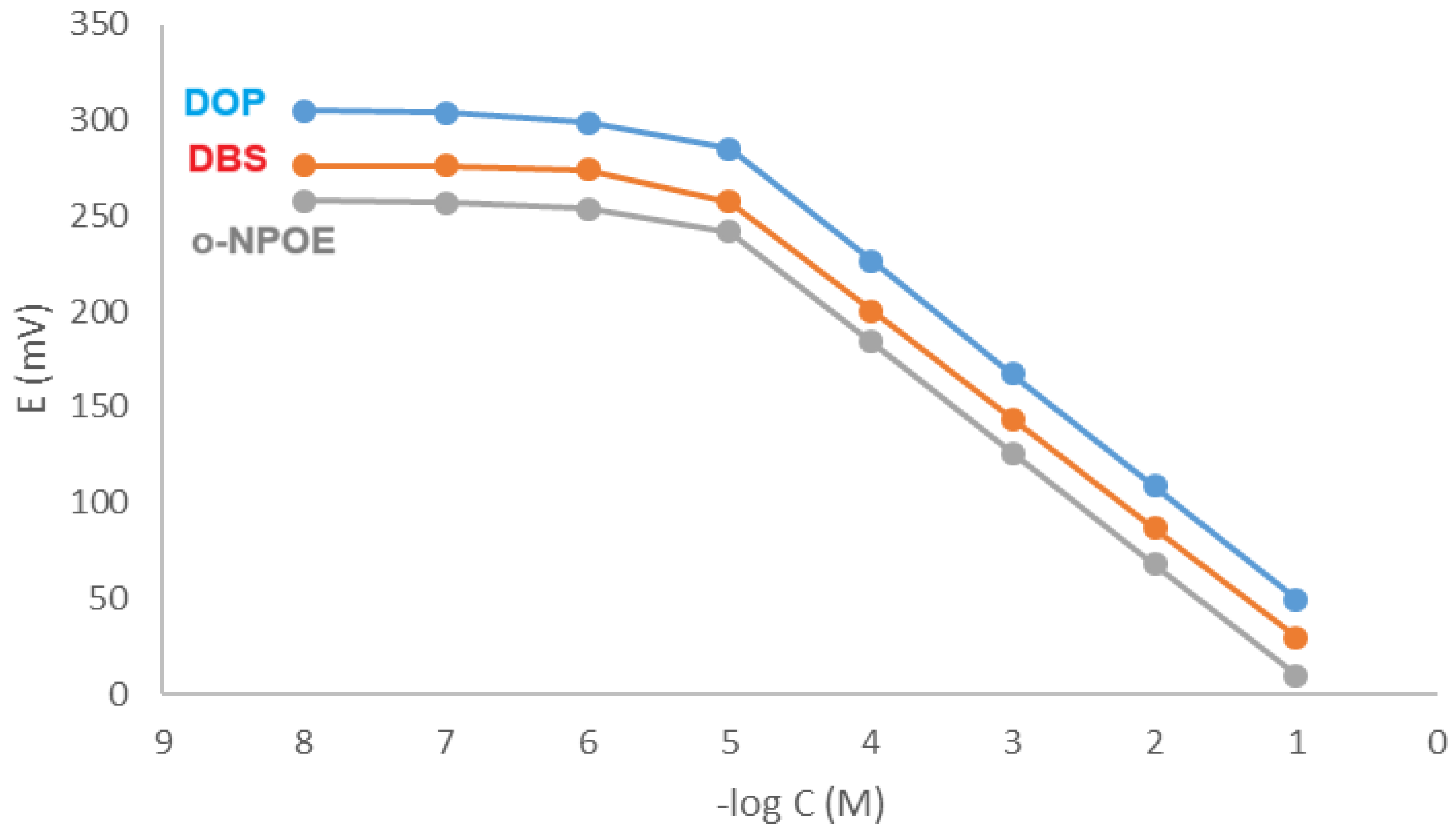 | Parameter | DOP-Membrane | DBS-Membrane | o-NPOE-Membrane |