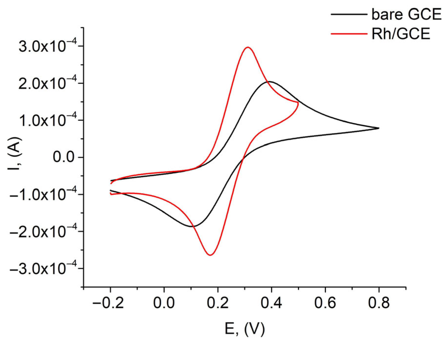 2.3. Electrochemical Deposition of Rhodium onto GCE