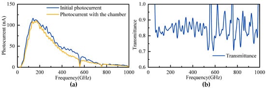 It can be observed that there are no significant absorption peaks after evacuating the chamber at the original water vapor absorption peak positions around ~560 GHz and ~755 GHz. Therefore, it can be concluded that the portion exposed to the atmosphere does not significantly interfere with the experiment.