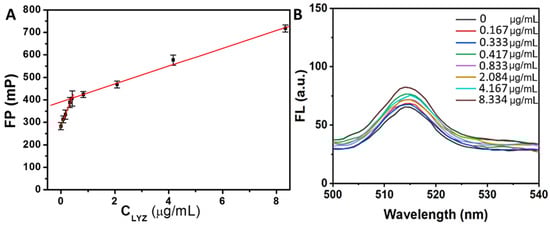 The fitting coefficient R2 was 0.997, and the detection limit for LYZ was 0.032 μg/mL according to the 3 s/k criterion. The relationship between the FP value and CLyz in the range of 0.417–8.334 μg/mL can be well described by the following equations: