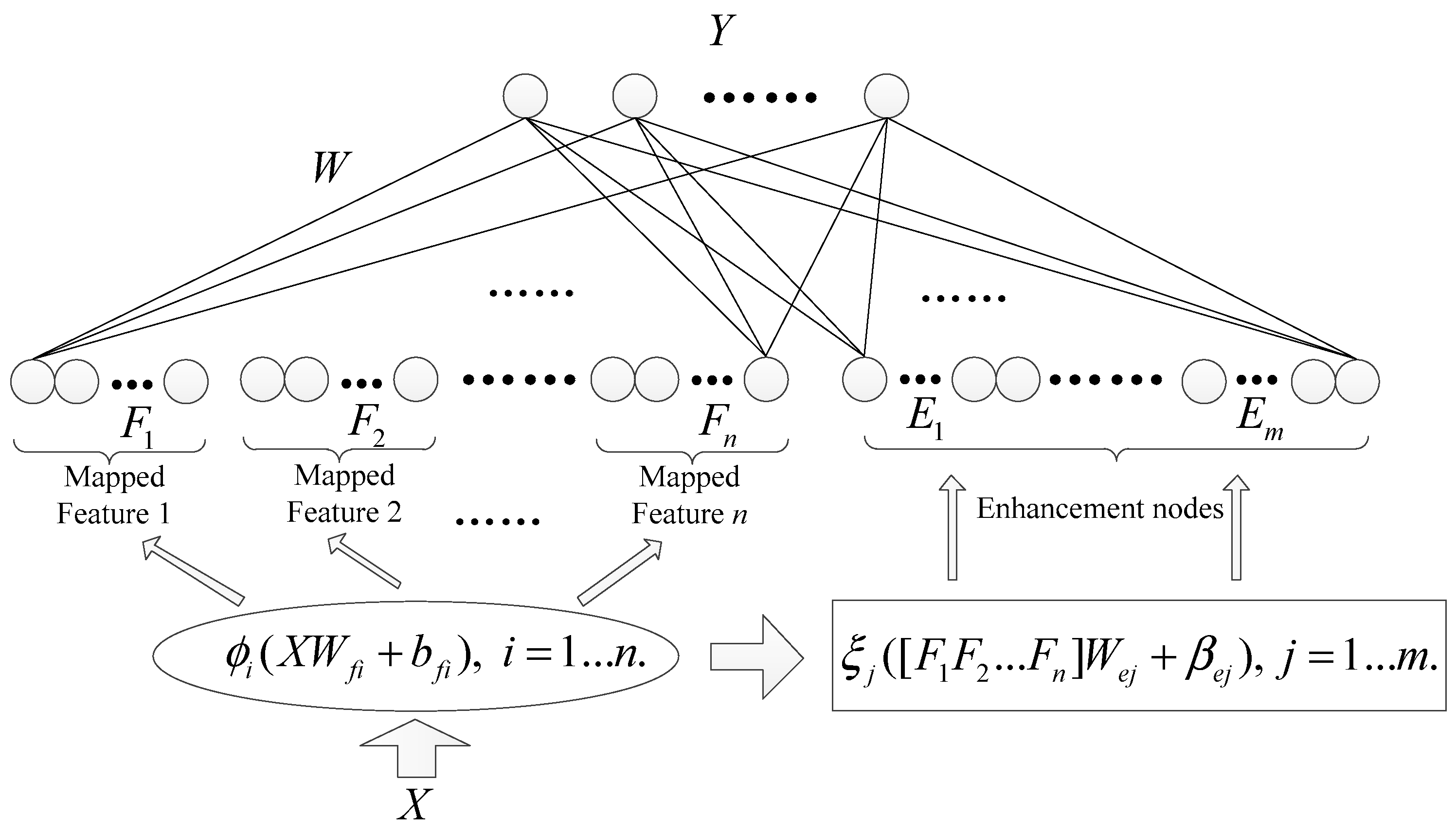 Finally, the feature node F n and the enhancement node E m were connected together with the output Y, thus the output of BLS model can be described as follows: