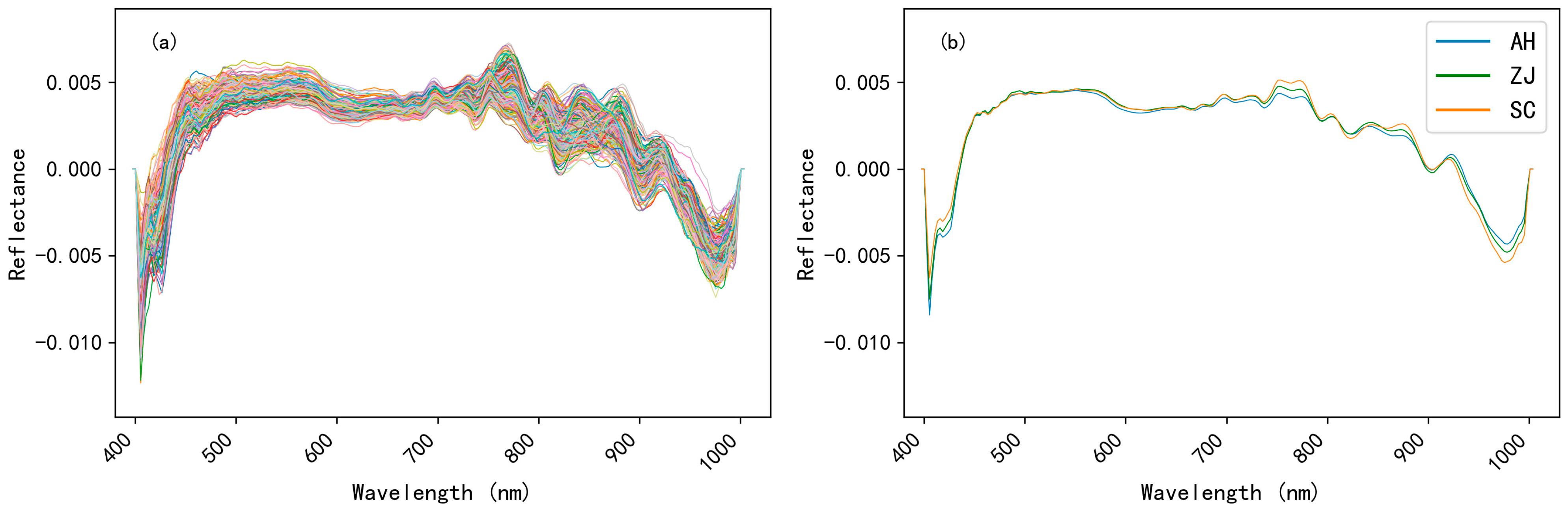 The extraction of RAM spectra was carried out using ENVI 5.2 software. The preprocessing, modeling and visualization of spectra were all carried out using the Anaconda 3 (Python 3.12) software.