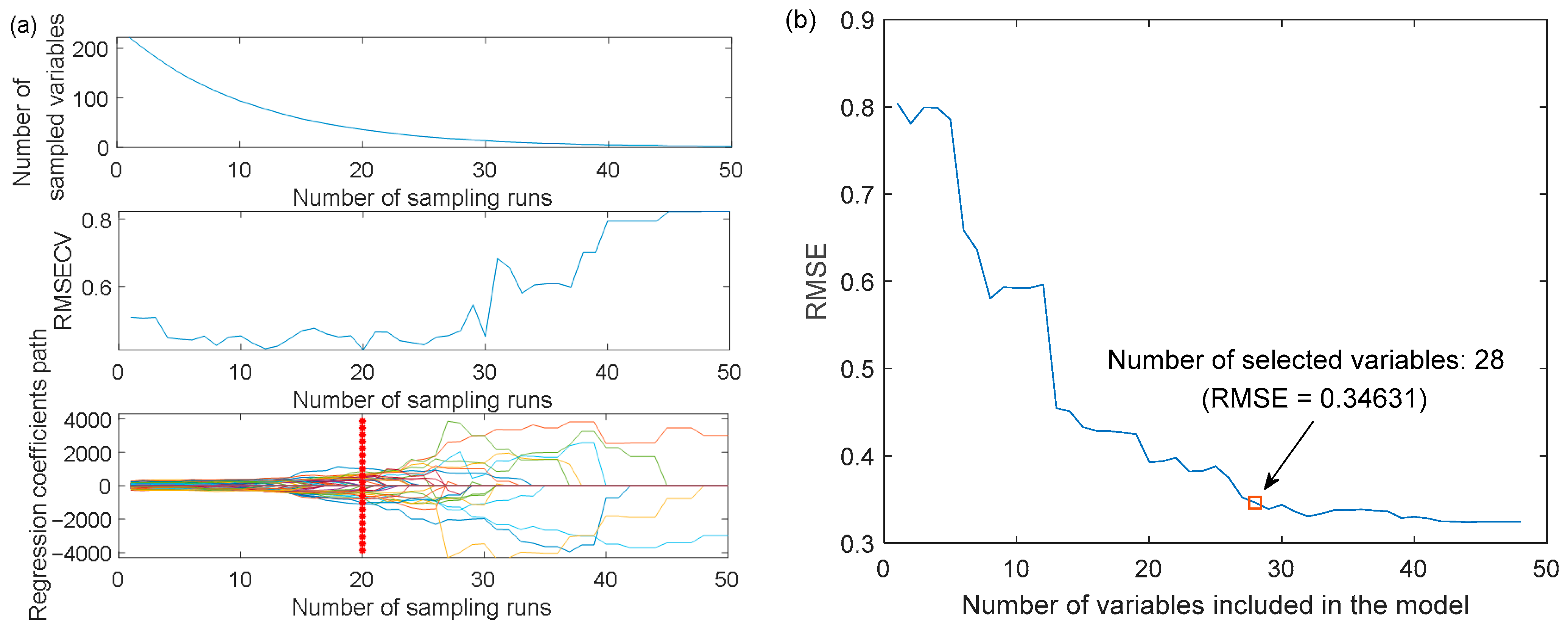3.5. Important Wavelengths Selection Using CARS and SPA