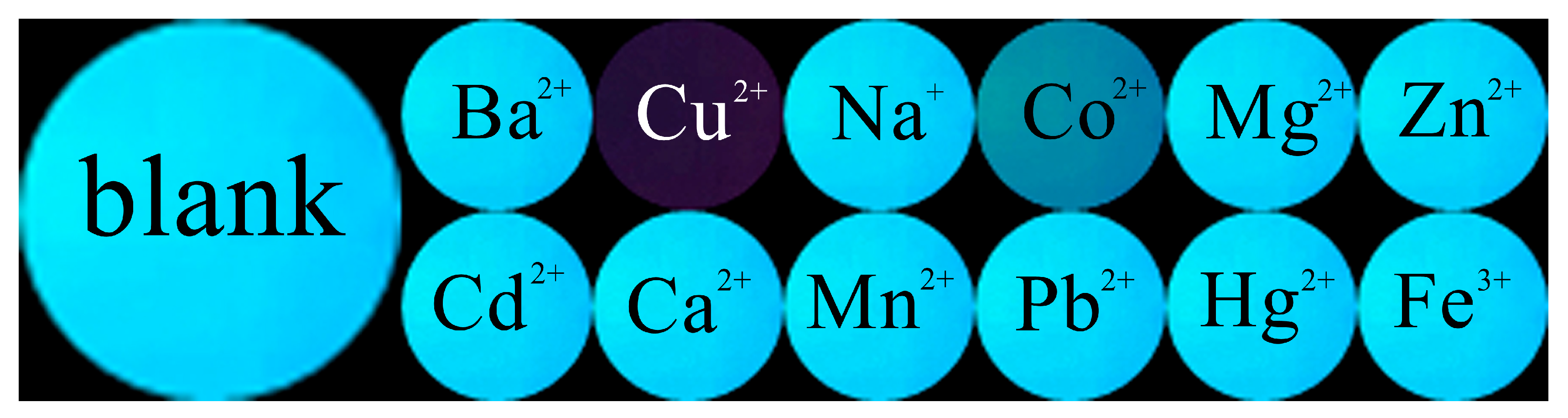 - Li, T.; Xiao, X.; Zhou, C.; Luo, M. Design and application of Cu2+ fluorescent sensor based on carbazole derivatives. J. Fluoresc. 2025, 35, 2993–3001. [Google Scholar] [CrossRef]